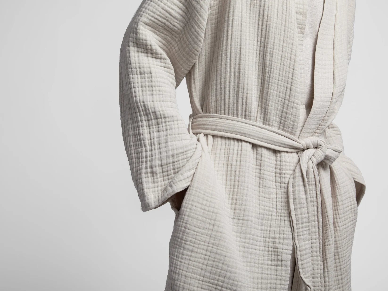 Light and breezy, our robe is made from 100% premium Turkish cotton woven into a fluffy 4-ply gauze. Garment washed for an exceptionally soft feel.